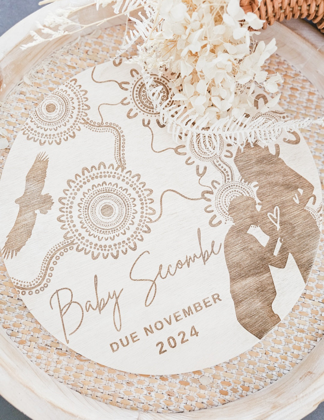 Our announcement plaques make the perfect way to announce your bub that is on the way. In design box please put what changes you wish to have e.g. No eagle, change eagle to a emu.