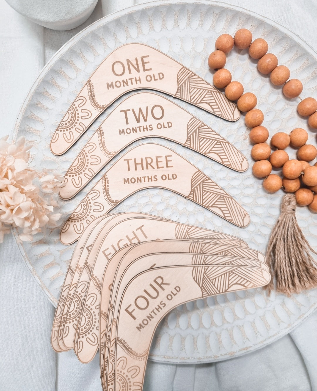 Celebrate your little bubs first year with our wooden boomerang milestone cards!