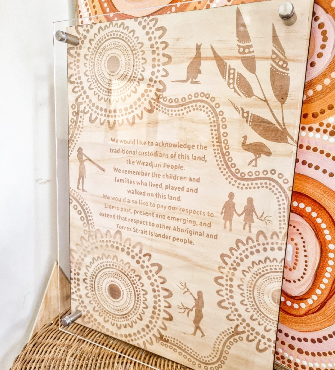 Acknowledgement Sign + Acrylic Front comes with 4 x standoffs to attach to the wall! Perfect for any space to acknowledge the country you are on!