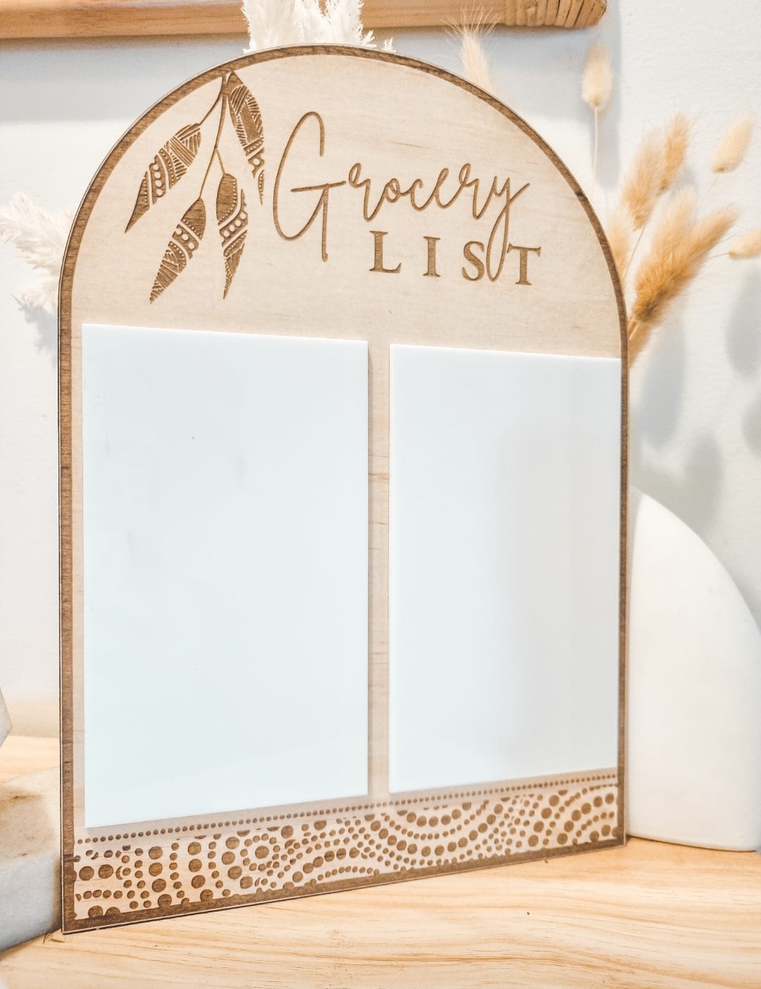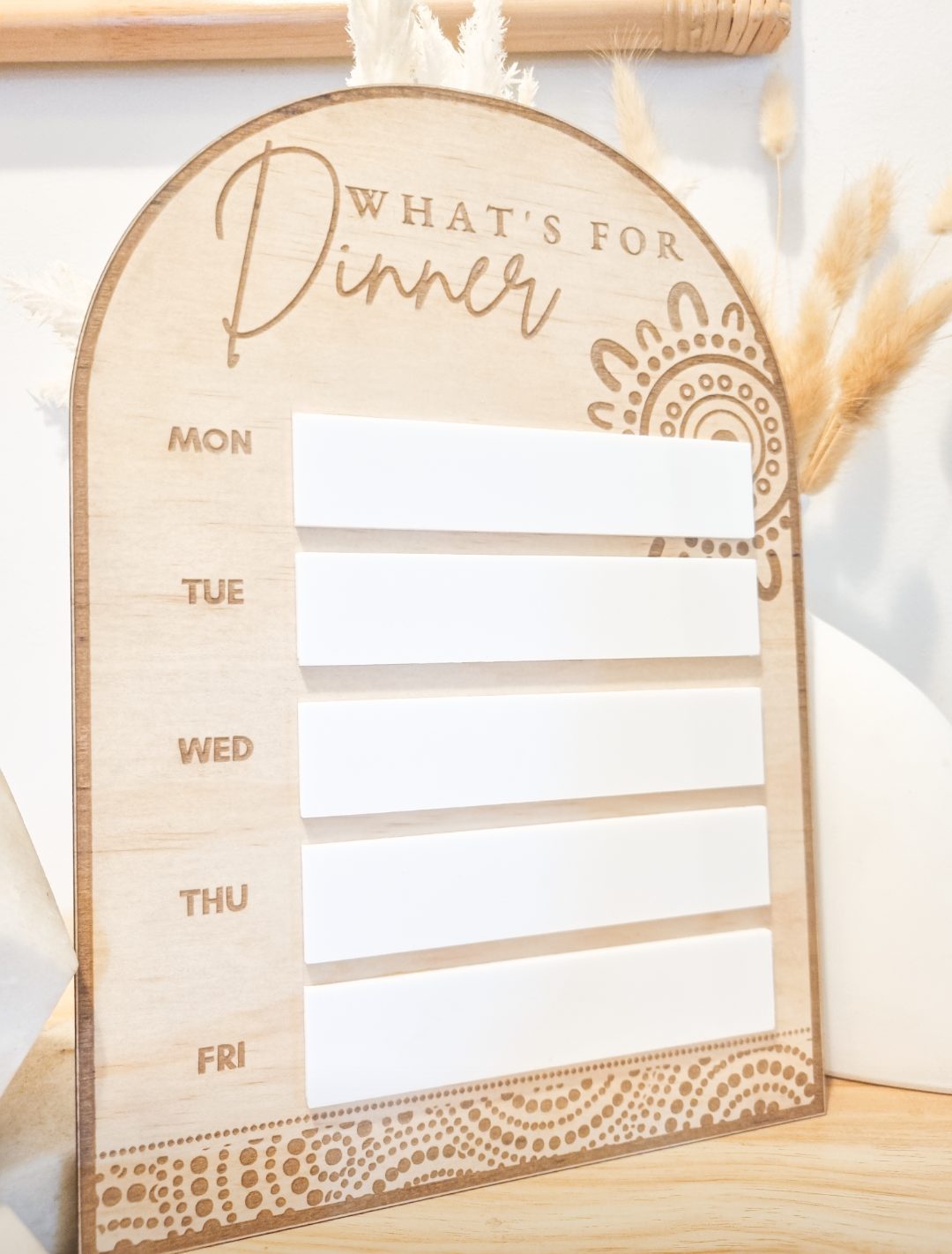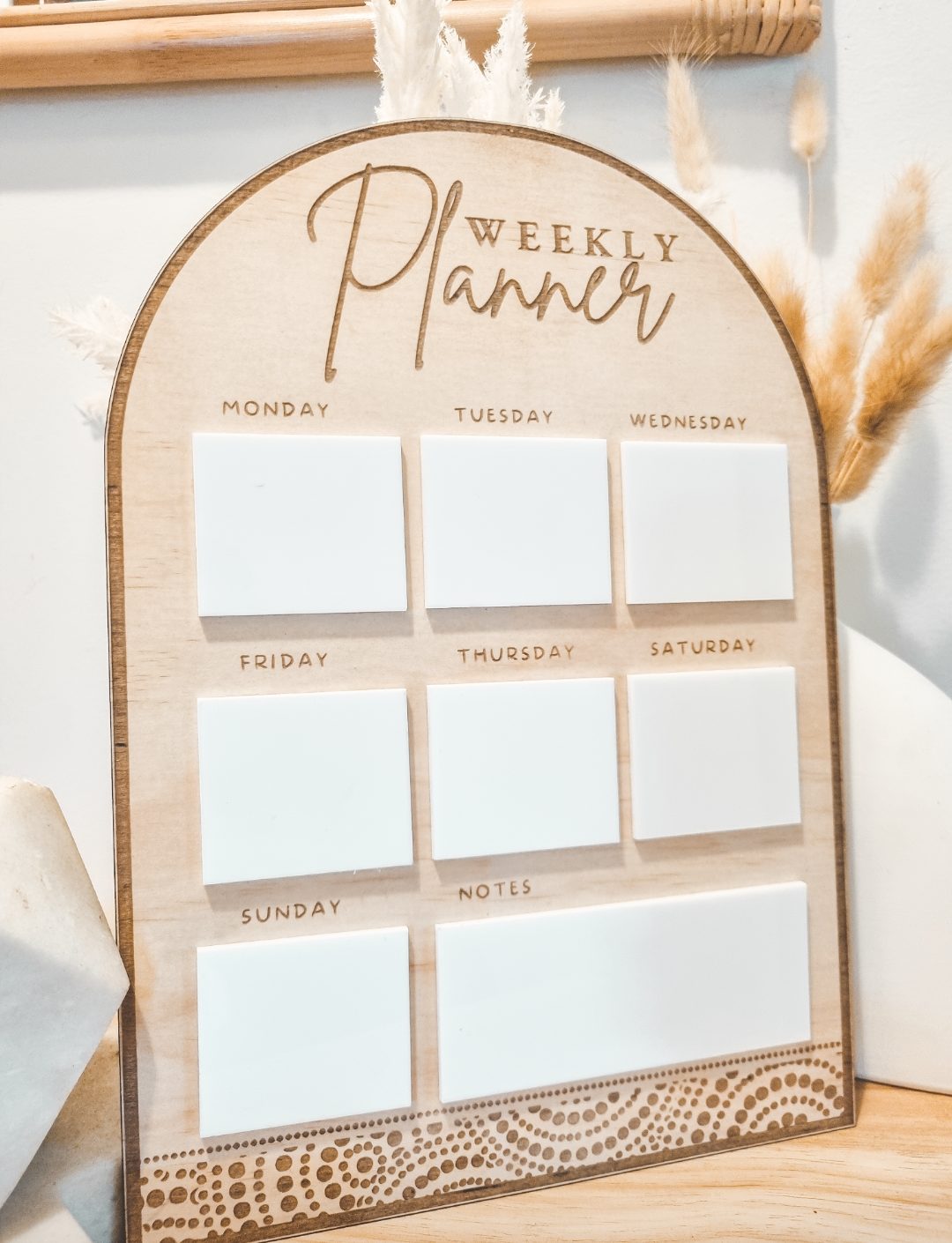 Write on the white acrylic pieces, with your grocery list, what’s for dinner & weekly planner with whiteboard marker, wipe down and start again each week.