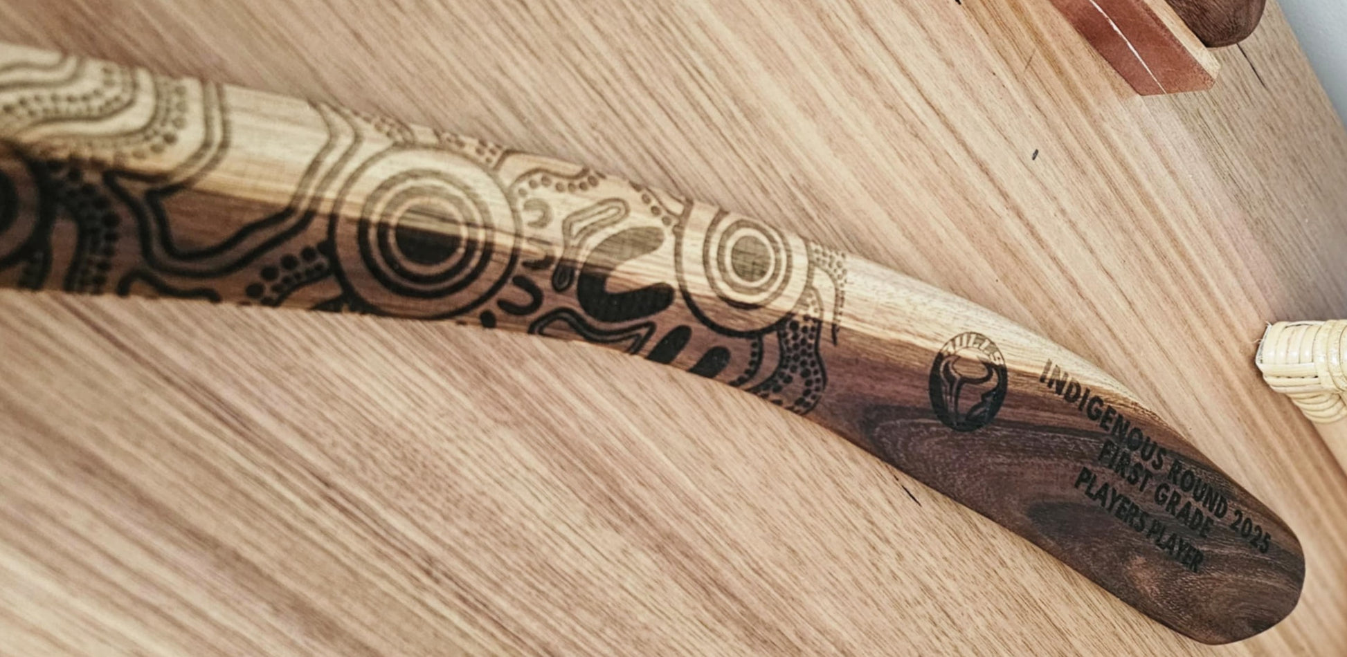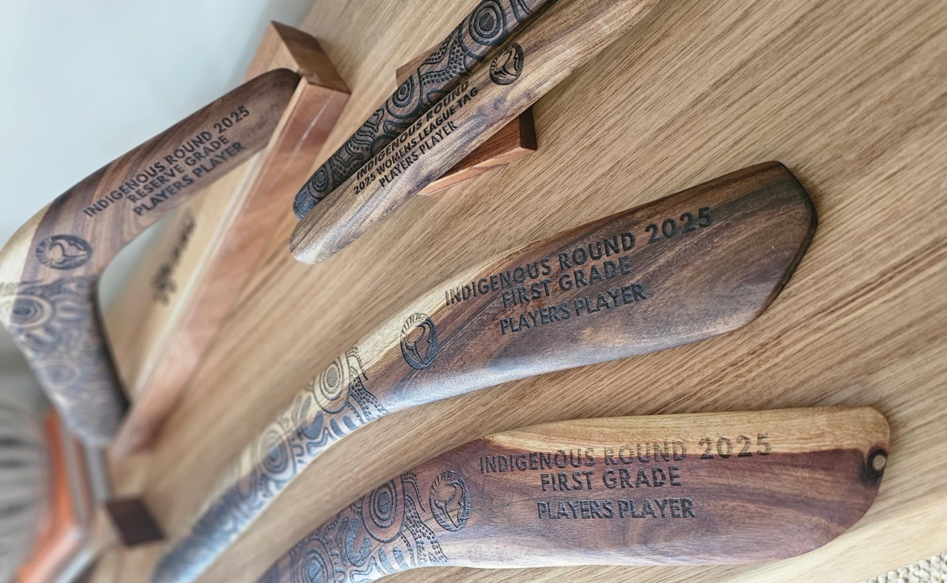 Each Tool is handcrafted by proud Wiradjuri elder Michael Lyons of Sandhill Artefacts, using traditional techniques passed down through generations. Made from sustainably sourced wood, every boomerang is custom engraved with names, logos, artwork or messages, and mounted on a stand for display.