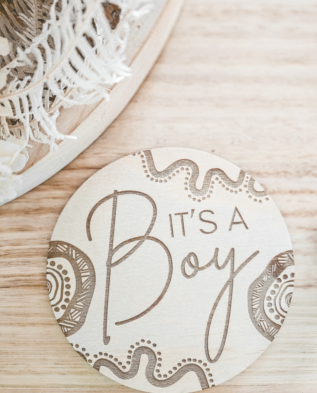 Aboriginal designed baby plaque is perfect for announcing bubs gender, use the plaque in a cute photo announcement and as a keepsake for many years to come!