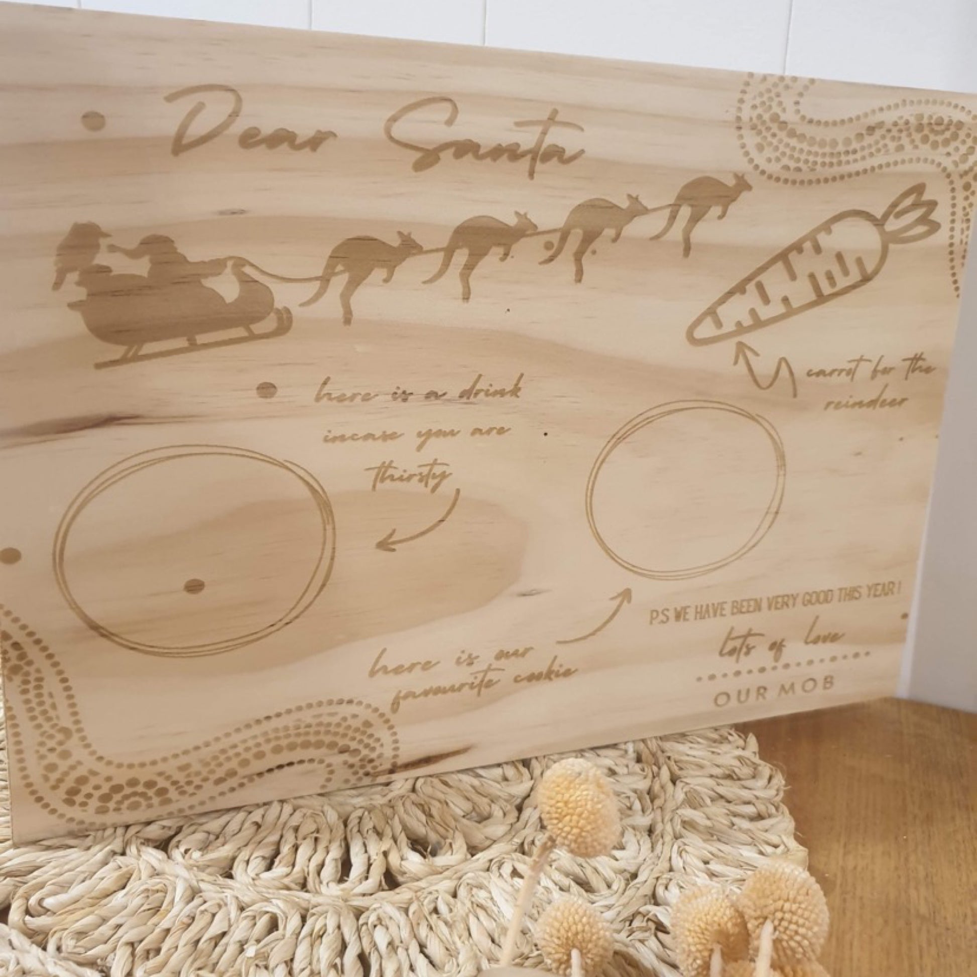 There is nothing more exciting than preparing for Santa's arrival on Christmas Eve! Leaving out treats for Santa and his Reindeers on our Koori Design Treat Board is such a beautiful childhood tradition that can be carried through many years and creates such excitement for your little ones.