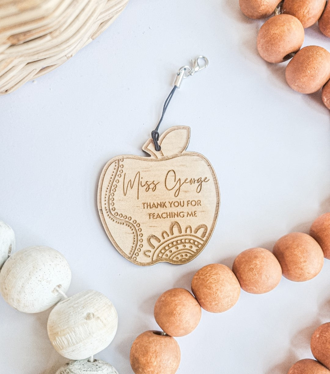 Thank you for teaching me apple shaped keychain makes a cute gift for thanking any teacher.