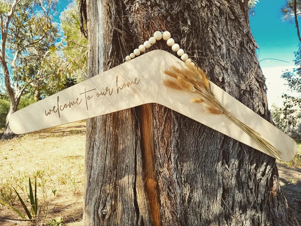 Inspired by my Children, each boomerang is natural wooden material that has been designed, handmade and engraved on Wiradjuri Country.