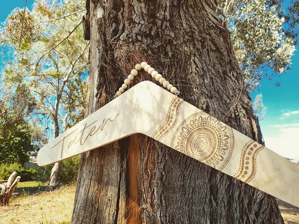 Inspired by my Children, each boomerang is natural wooden material that has been designed, handmade and engraved on Wiradjuri Country.